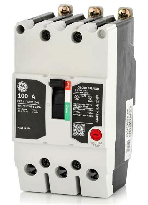 Ge circuit breaker480277vinterrupting rating 25ka@480vbolt on3 phaselong time and instantaneous trip functionsthermal magneticnoninterchangeable tripresidential, commercial, industrial, Huge in stock inventory of new. 1year warranty included. Teyd 3 pole 100a breakerteyd3100b abb. Shop top brands, expert support, and fast service across all standard electric locations.